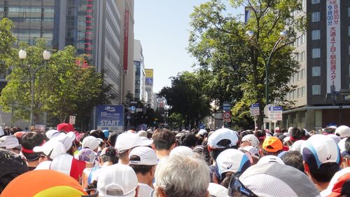 最高の天気だった。 スタート時刻の気温は、19℃。 一般的なマラソン大会としては、やや高めの気温になるが、「北海道マラソンとしては」低い。風は北風で、とっても心地よかった。