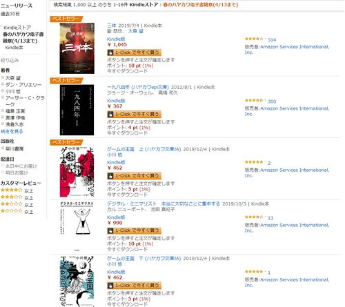 凄い祭りが始まった。 その名も、春のハヤカワ電子書籍祭だ。 早川書房の国内外1,000作品「電子書籍版」が、(紙の本に対して)最大50%割引になるというではないか。 Kindleストア限定の企画ではあるが、それで必要十分と言う人も多いだろう。 こういったフ…