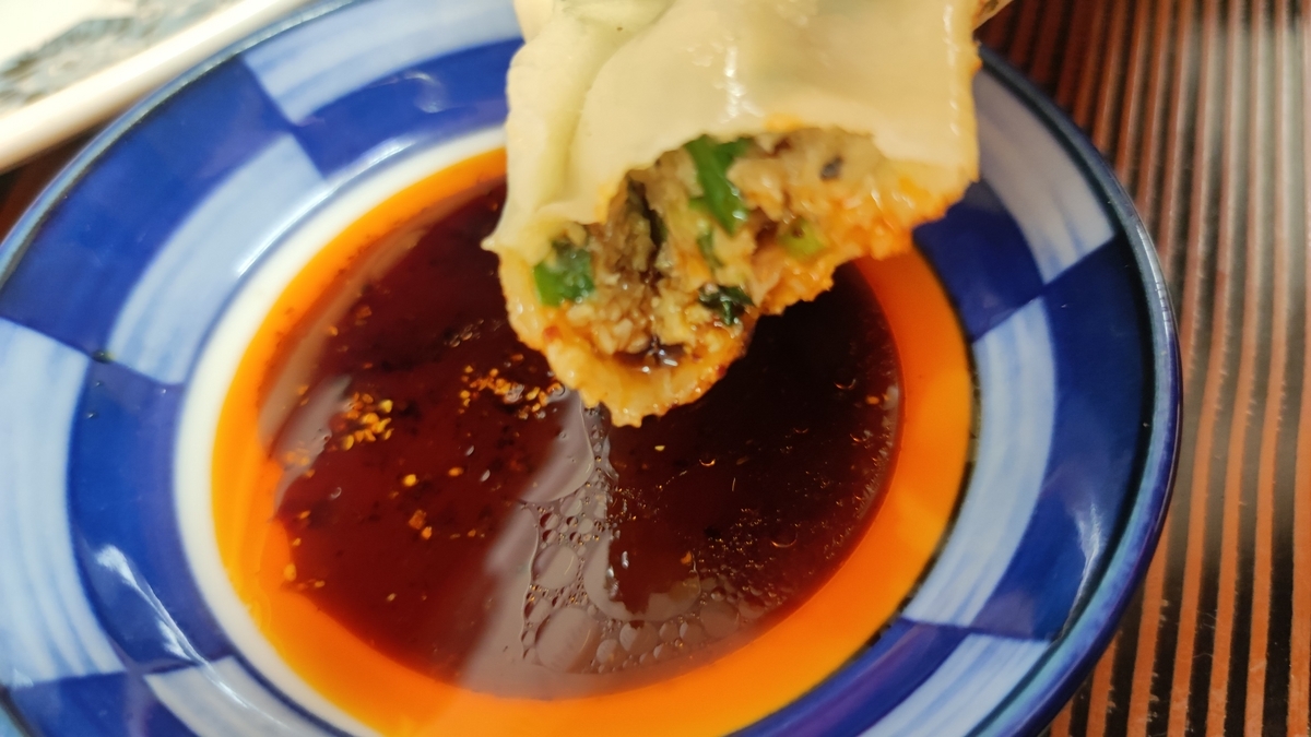 下味はそんなについていないので、シンプルに、辣油入りの酢醤油で食べるのがいい。