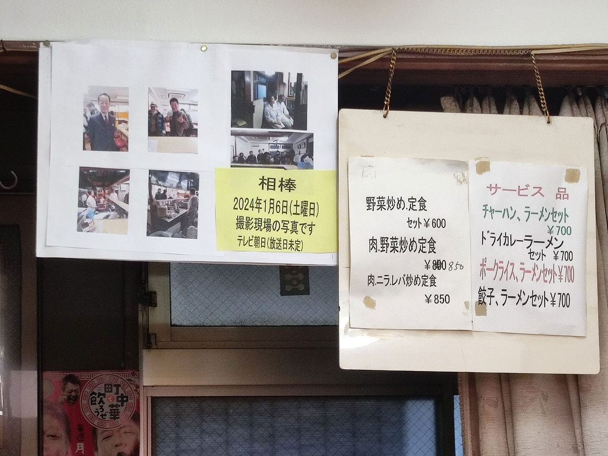 番組HPに掲載されている外観写真の看板には、「町中華」の表記はなかったので、どうやら、この番組の放映後、《町中華》を名乗ることに決めた(?)ようだ。