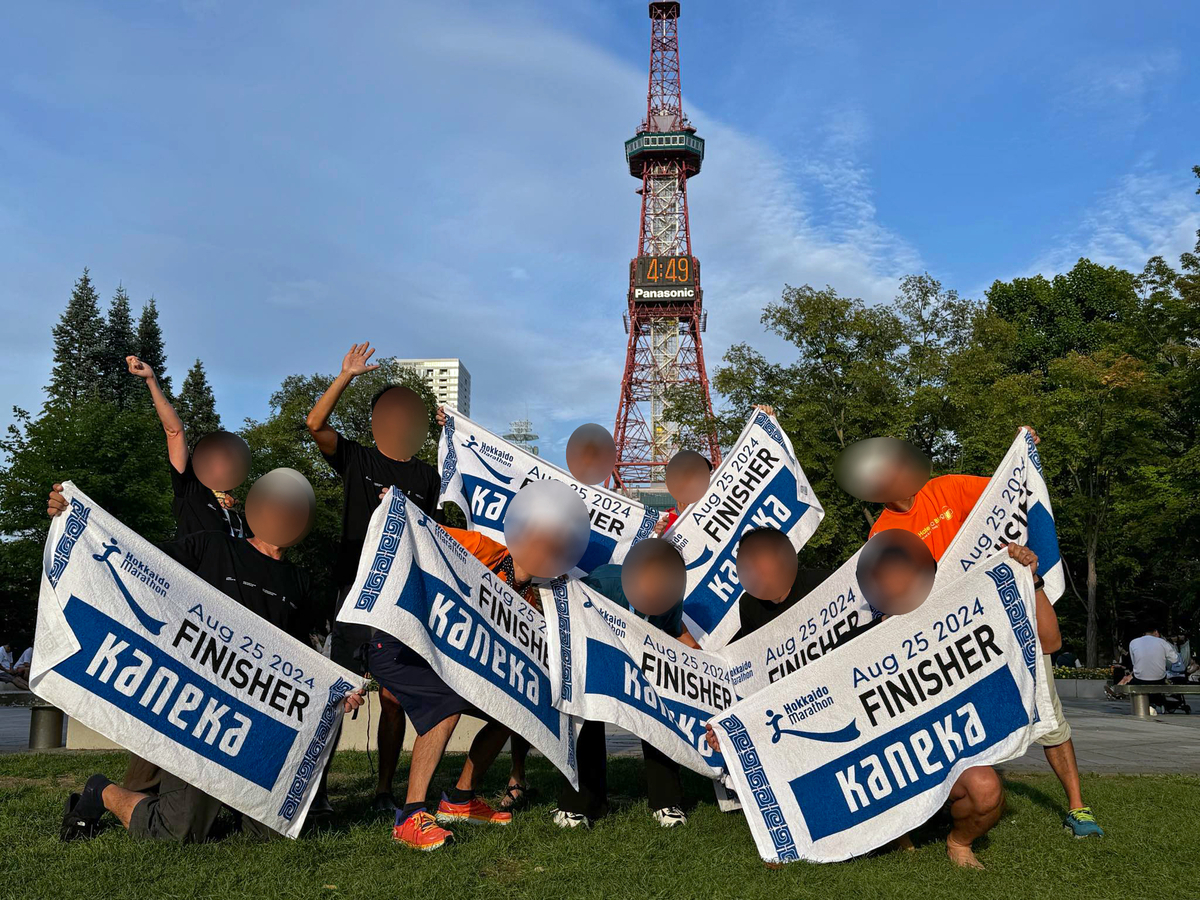 テレビ塔をバックに、フィニッシャーたちの笑顔が並ぶ。