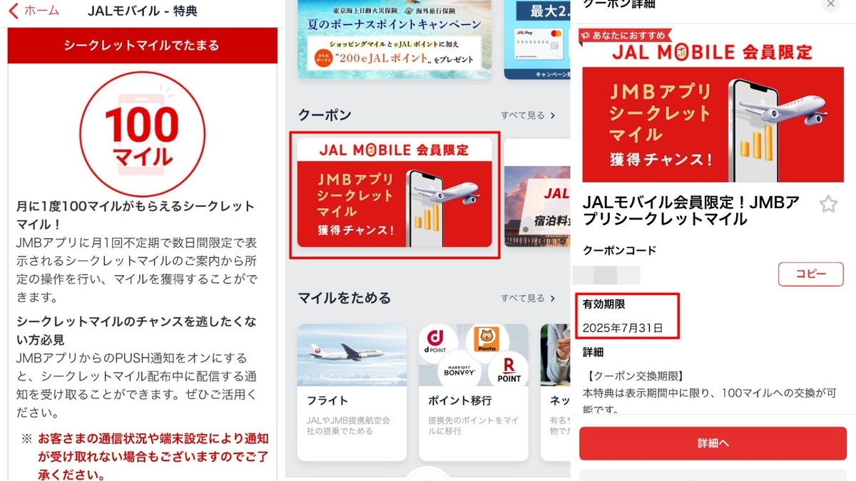 そのため、6月下旬ぐらいまで、かなり意識してJMBアプリをチェック。