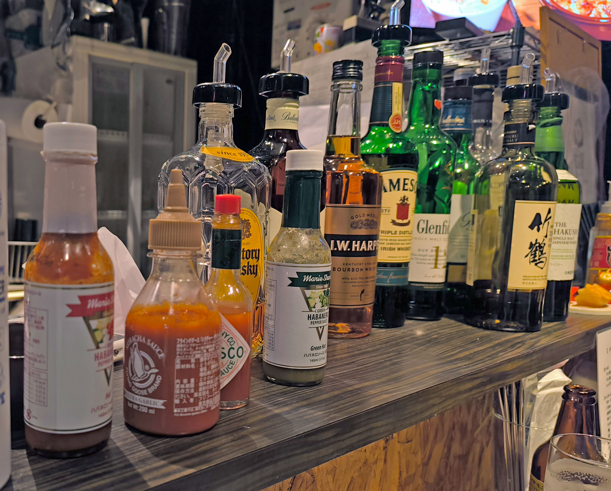カウンターの上には、メニューに載ってない酒も多数並んでいて、常連さんたちはそこから選んで注文していた。