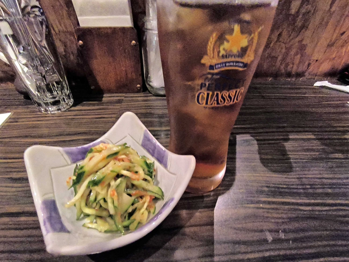 お通しとして、ちょっとした酢の物がついてきたのだけれど、これがなかなか美味しかった。