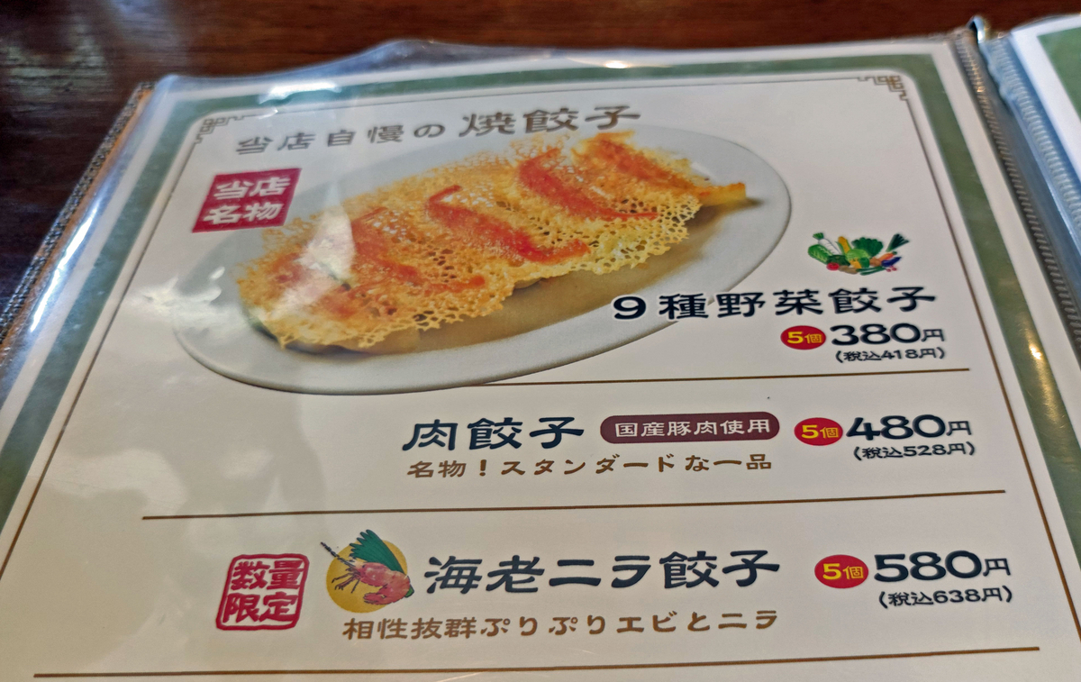 専門店だった頃と比べると、少しメニューは減ってしまったけれど、造りは同じモノのようだし、《当店自慢の焼餃子》と書いてあるから、期待できそうだ。
