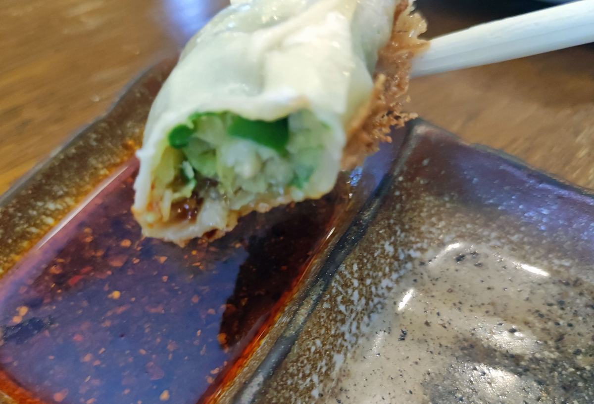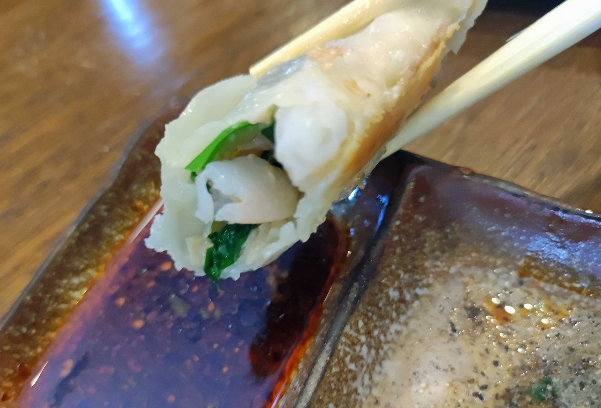 皮がクリスピーで食感が良い。具は下味がしっかりついていてジューシー。