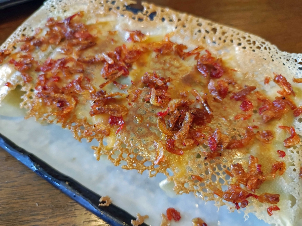 桜エビは、潰されて皮の上に無理矢理押しつけたられたような感じで、メニュー写真のような、生き生き感や鮮やかさがない。ちょっと興ざめ。
