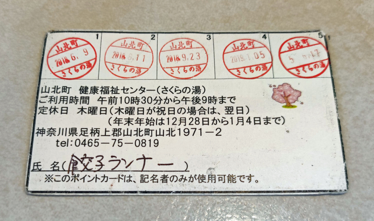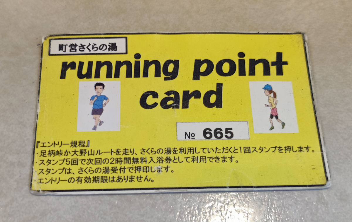 僕は今回、4年ぶりにこのカードを持参した。(3年4ヶ月前に走った時は、さくらの湯に寄れずに帰宅。)