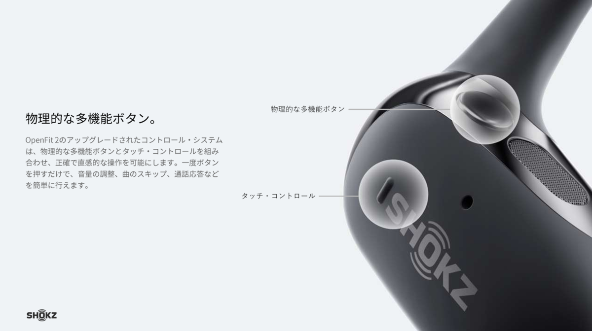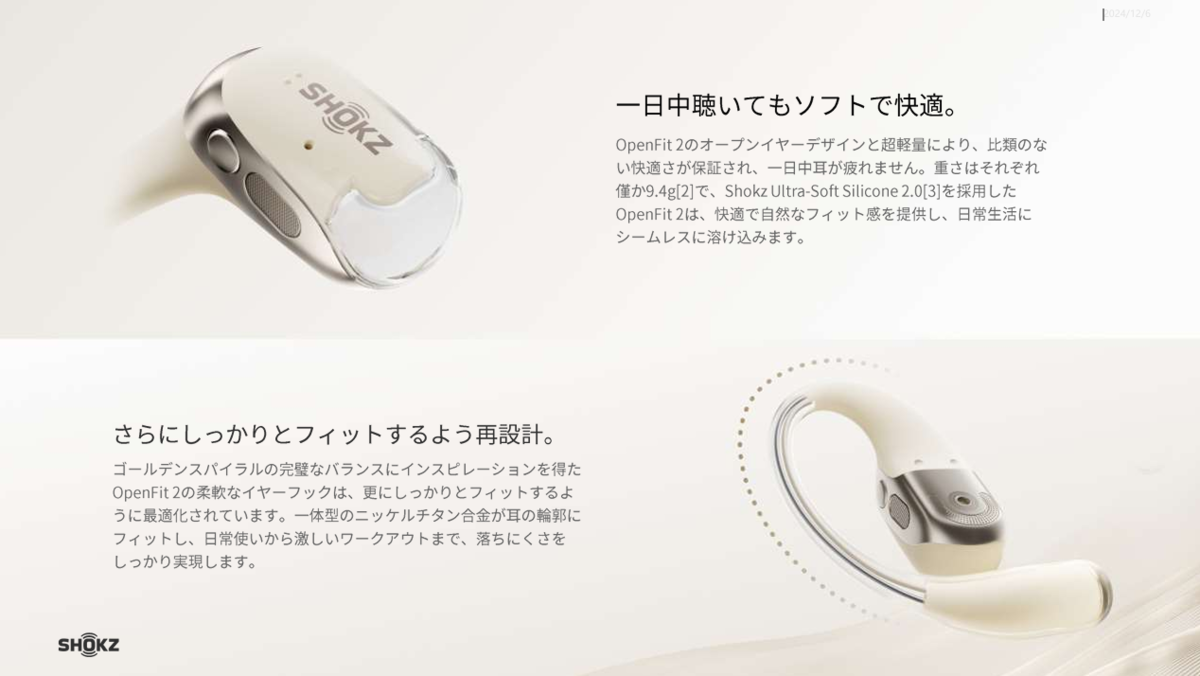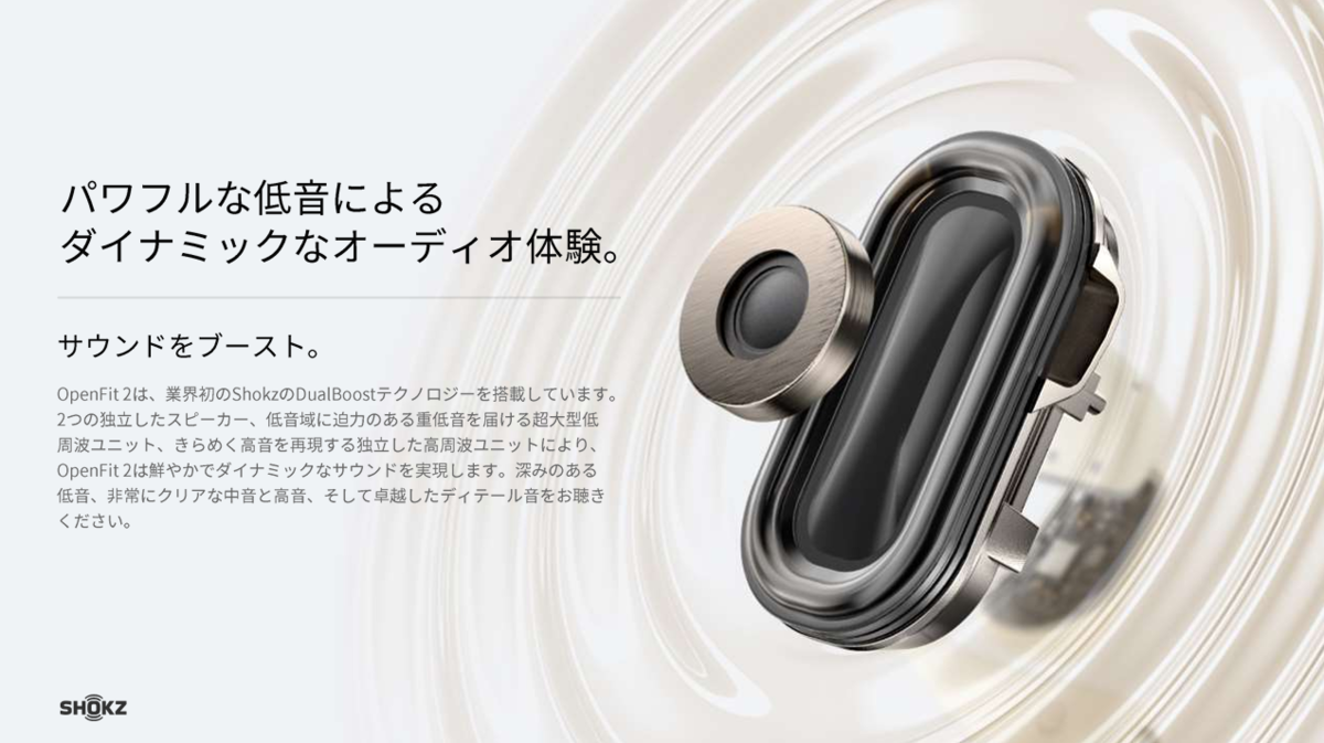 2年前にShokz初のオープン型ワイヤレスイヤホンとして発売され、大いに話題となった「OpenFit 」の後継モデル。