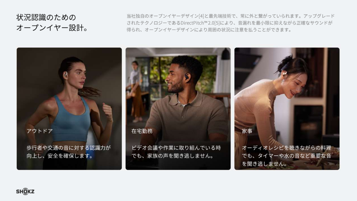- シリーズ3製品の比較表(Shokz Website)