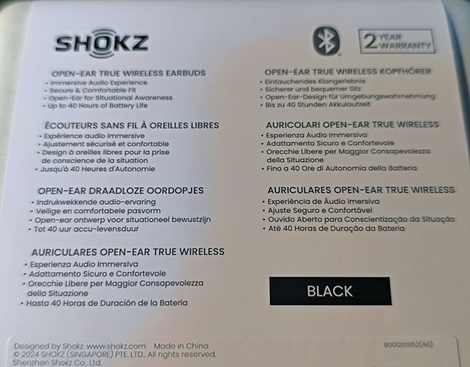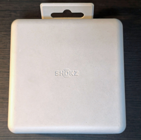 SHOKZのデザインロゴが、彫り込み文字で描かれている。