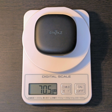 充電ケース込みの重量は、約70g。