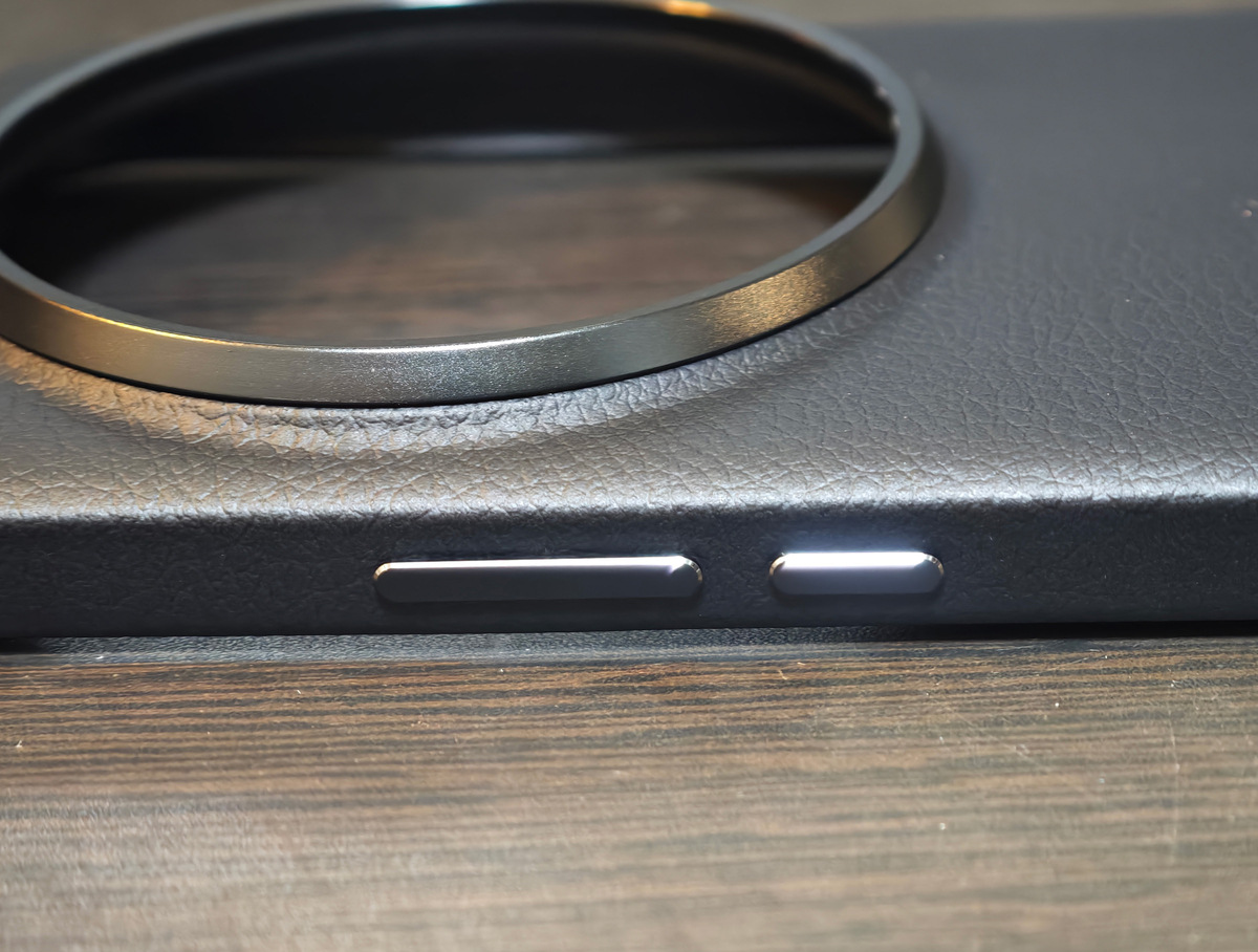 レザーの質感が実に心地良く、サイドボタンも押しやすい。