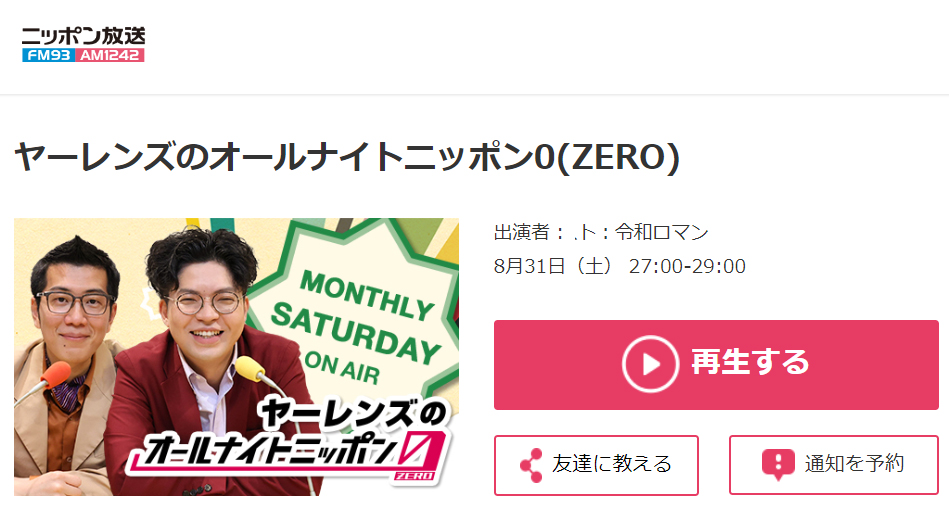 明後日(9月7日)まではradikoのタイムフリーで聴取可能だし、(毎回言ってるけど)神アプリのらくらじ2を使えば録音もできる。
