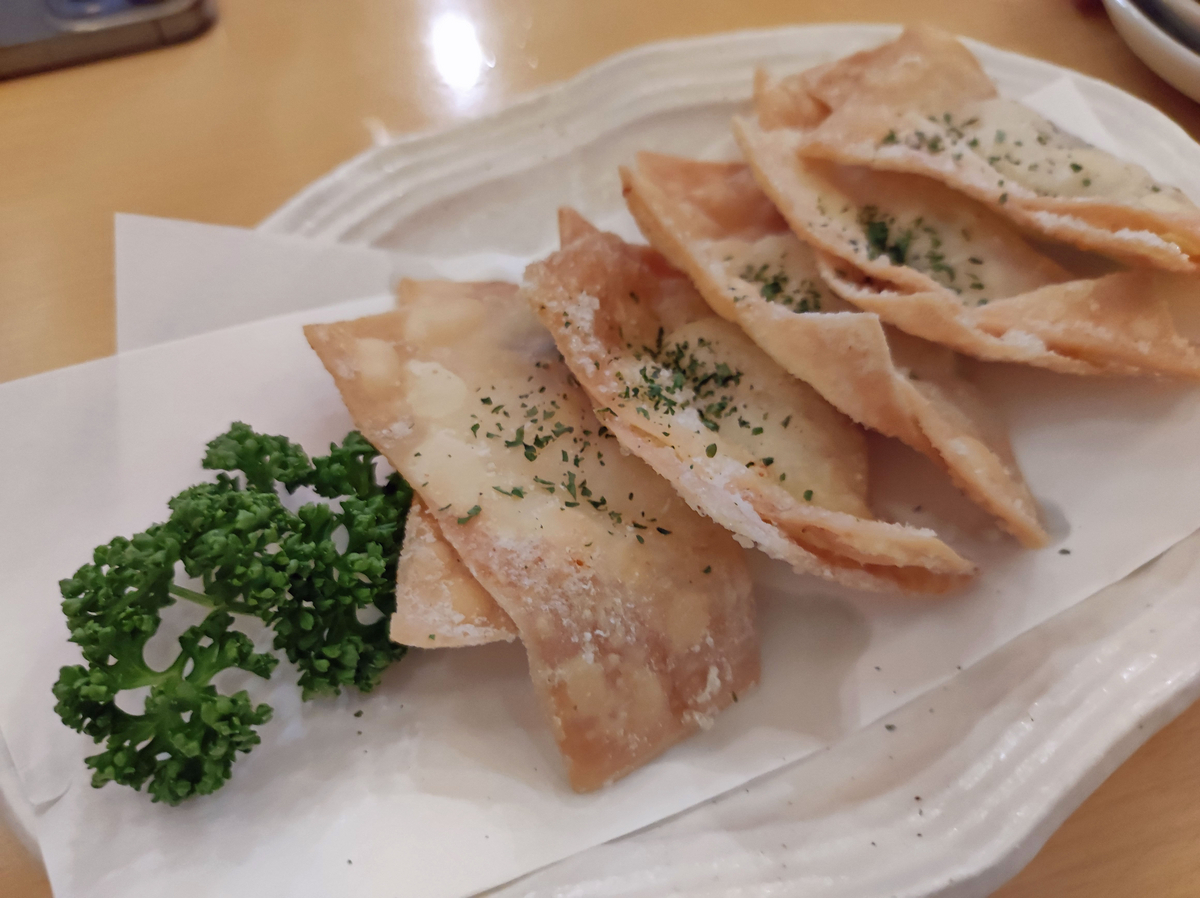 そのビジュアルは、揚餃子っぽくなくて、洋食のアペタイザーに出てきそうな感じ。