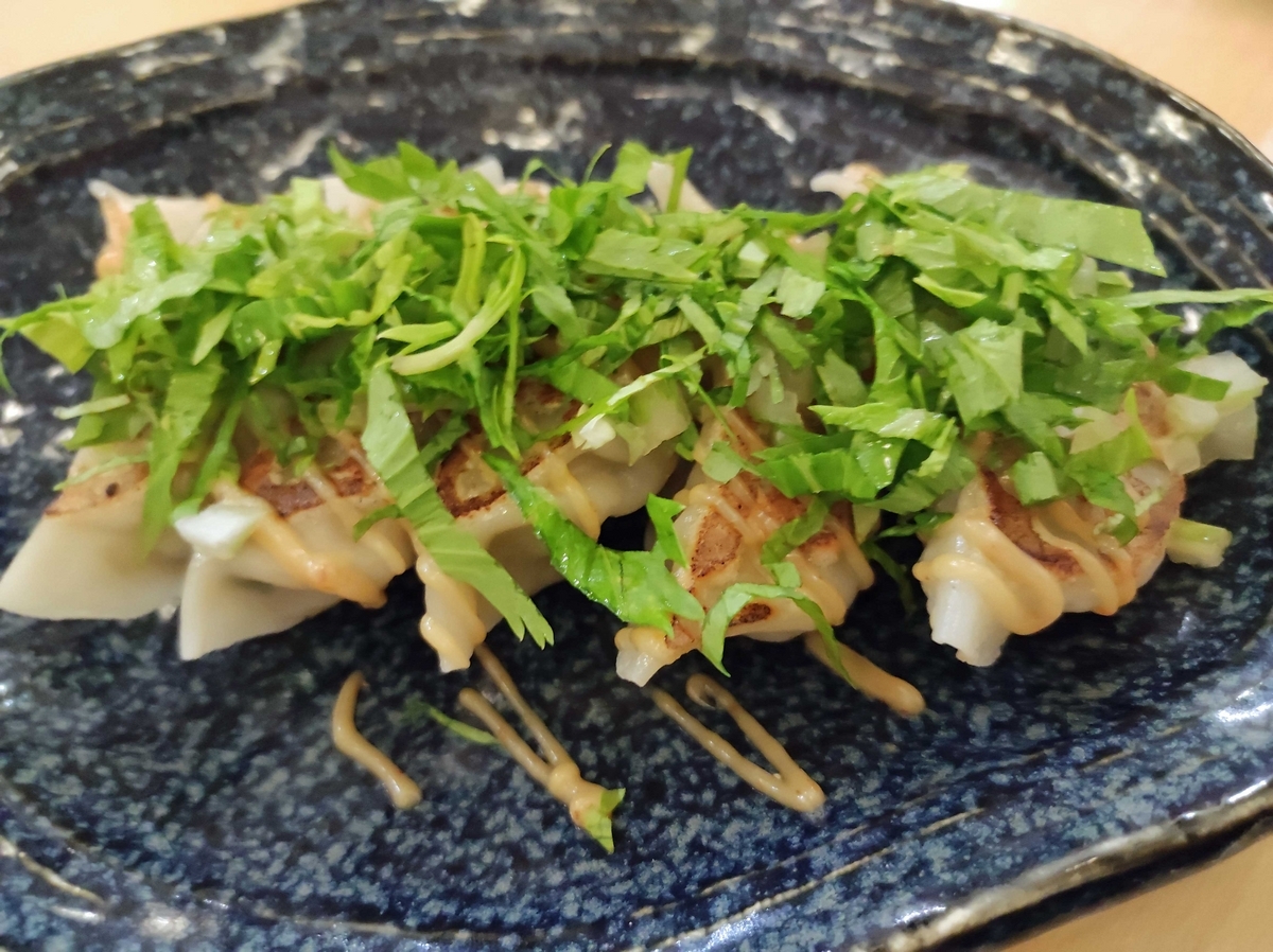 しそ餃子は、それにたっぷりのしそがプラス。しそ好きにはたまらない味になっていた。