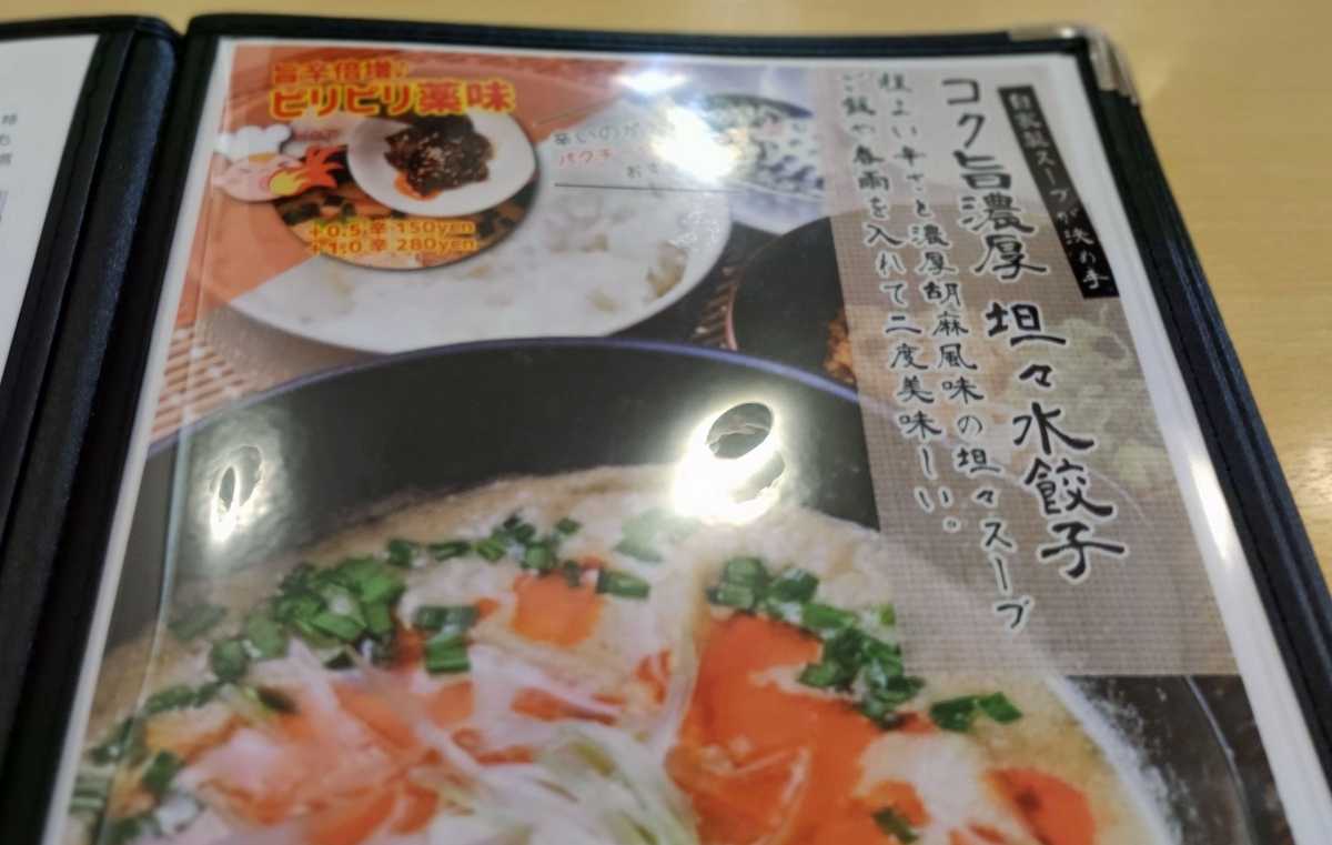 前述の通り、水餃子の皮は、焼餃子と全く異なり、つるんとした食感になっているため、コクのあるスープのとの相性も抜群だった。