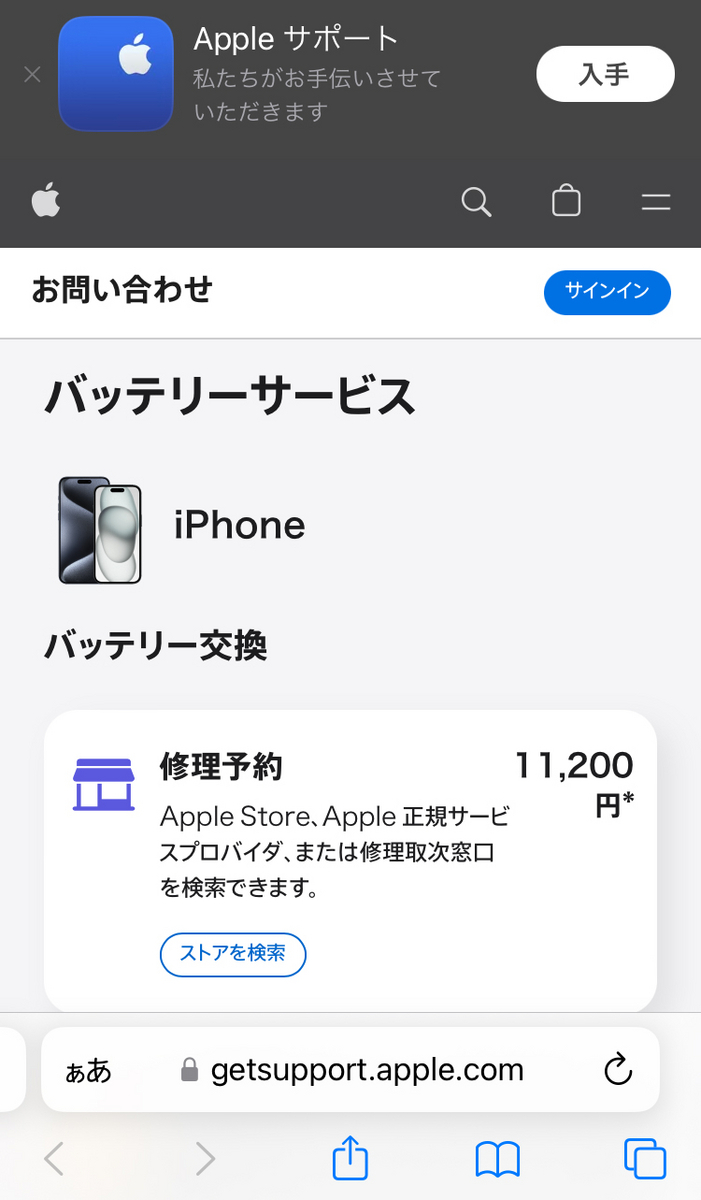 バッテリの交換料金はいくらなんだろうと思い、その先の画面で確認してみると…。