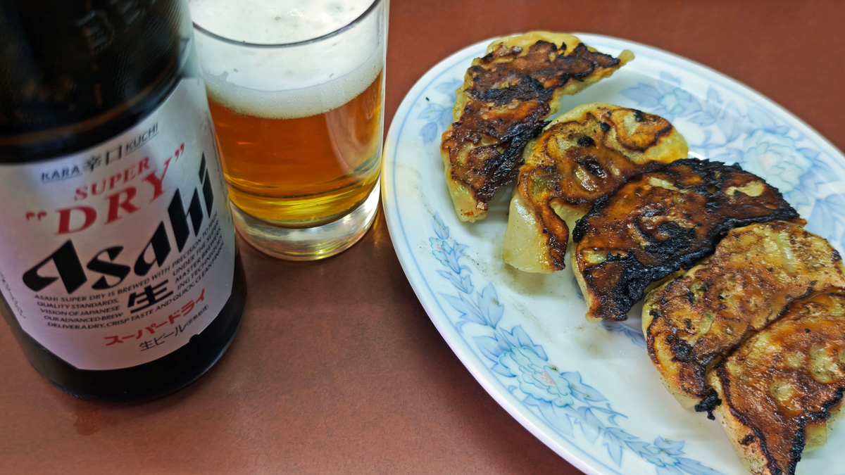 僕は、各種定食類には目もくれず、もちろん餃子とビールを注文。