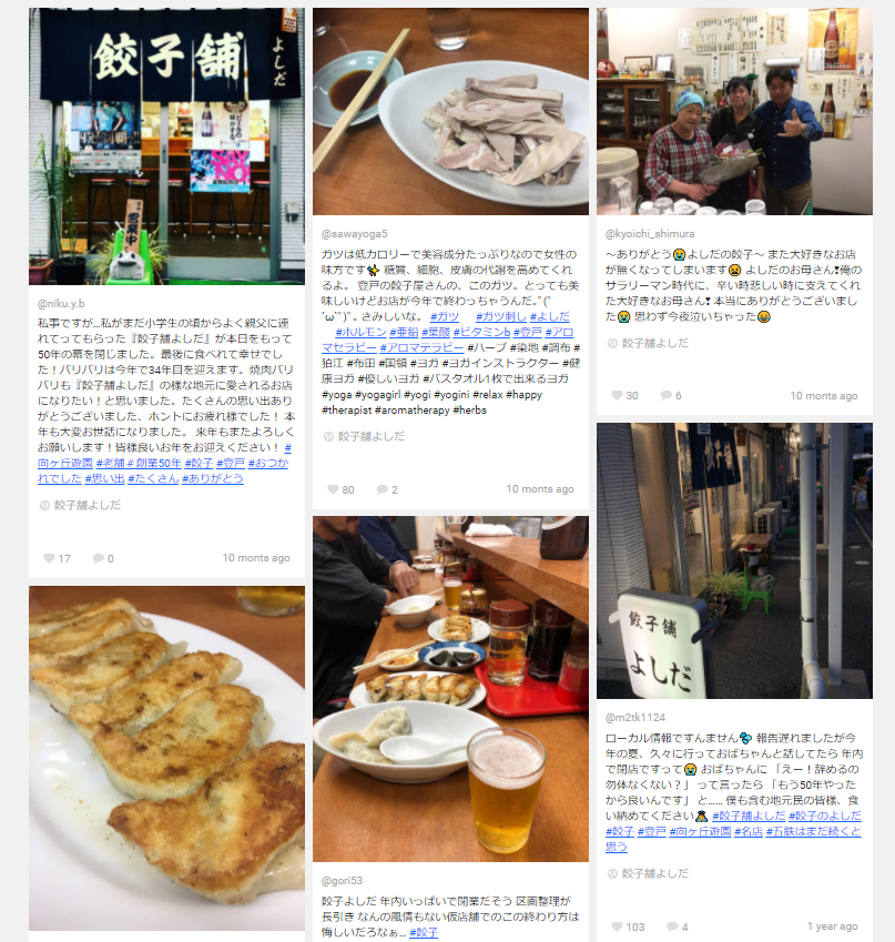 Instagramには、そんな「よしだ」を惜しむ声が並んでいる。