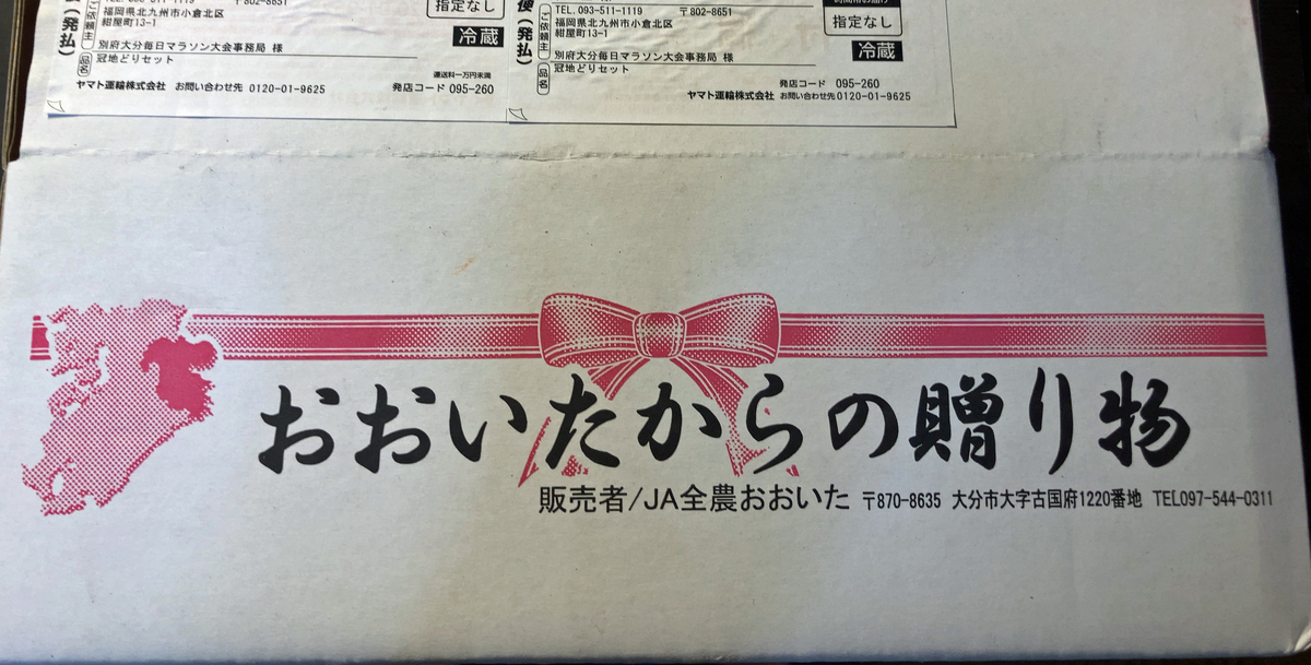 これは、「別大チャレンジ2021」の開催要項に記載されていた《5,000円相当の大分県特産品》に違いない、と。