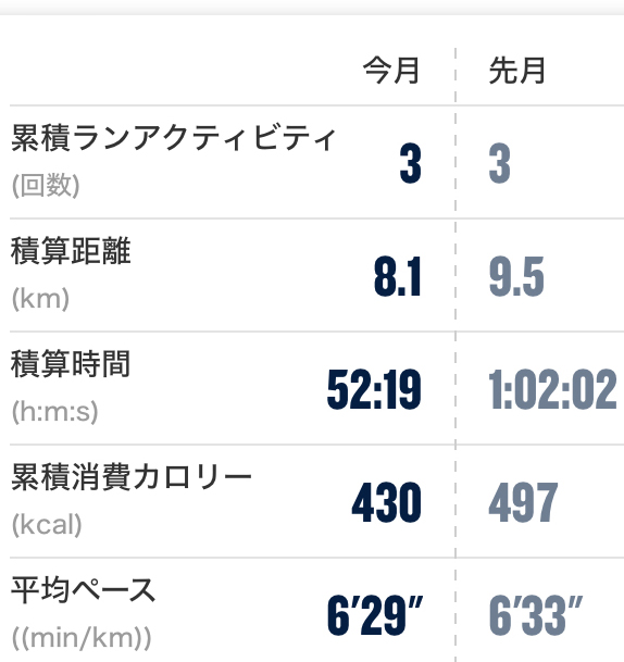 6月トータルよりも、積算距離は若干短いが、平均ペースは僅かながら上がっている。