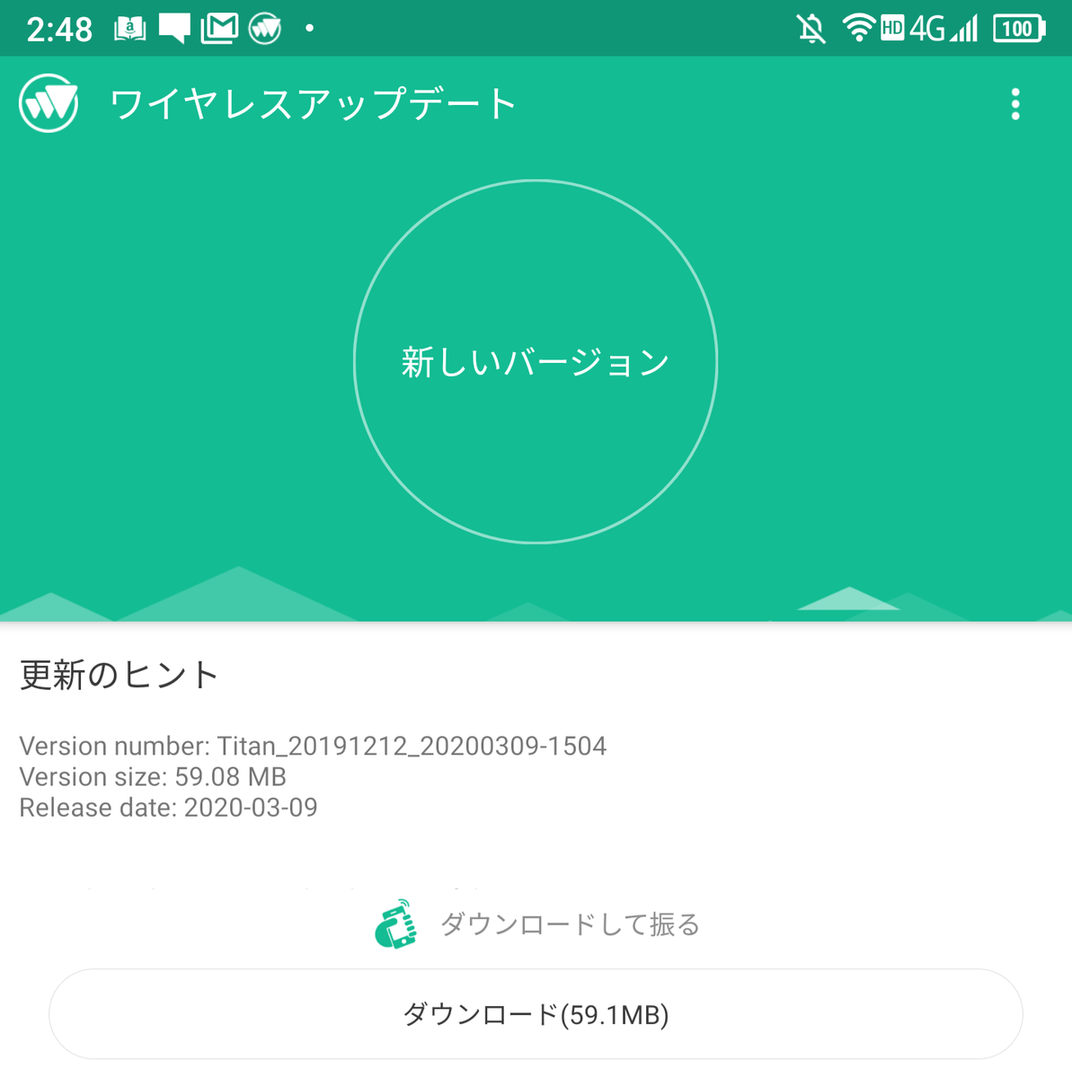 アップデートの方法はどうやるんだっけ?と一瞬悩んだが、大丈夫。